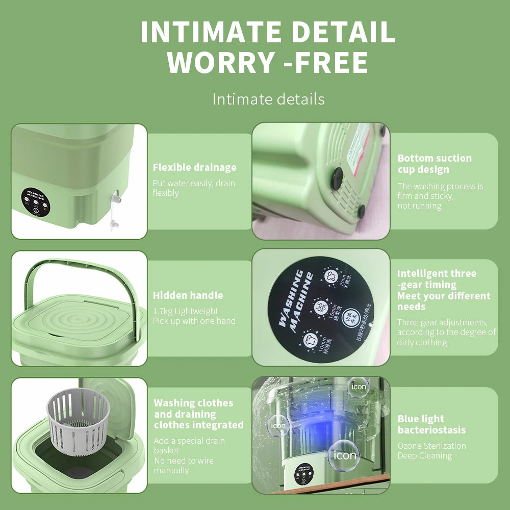 is an efficient and compact solution for your daily laundry needs. Designed with convenience and environmental consciousness in mind, this washing machine is perfect for small spaces, travel, or for those seeking an eco-friendly alternative to traditional washing machines.